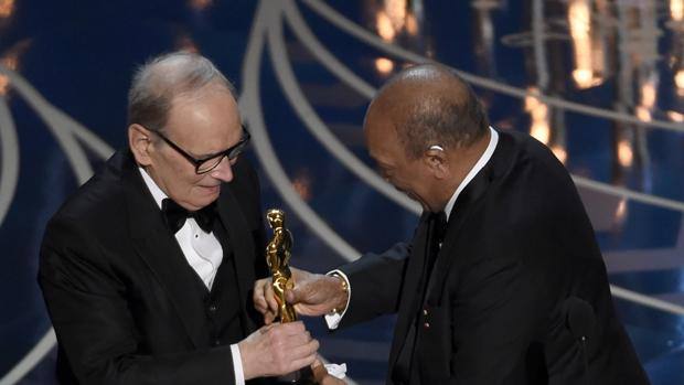 Gli altri candidati per lo stesso premio erano John Williams per Star Wars: il risveglio della Forza, Thomas Neuman per la colonna sonora de Il ponte delle spie, Jóhann Jóhannsson per Sicario e Carter Burwell per Carol. La standing ovation del Dolby Theatre di Los Angeles ha accompagnato il maestro nel raggiungere il palco, e gli ha riservato l'applauso più lungo della serata.