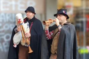 Zampognari nelle aree verdi nei quartieri di Napoli