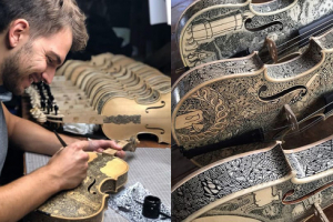L’Inferno della Divina Commedia dipinto sui violini, il capolavoro dell’artista