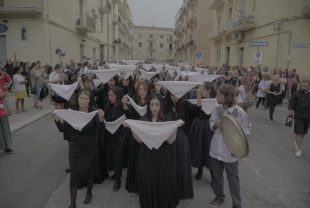 Un corteo come forma d'arte itinerante: lo definiscono così gli ideatori, il cantante Vinicio Capossela e la sorella Mariangela. Quel che è certo è che 'Trenodia' (discesa processionale, in greco) cattura gli occhi dello spettatore, immergendolo in un mondo quasi onirico, che affonda le radici nelle tradizioni popolari religiose. Un progetto itinerante e anche partecipato: chiunque può iscriversi ed entrare a far parte del corteo, sfilando per le vie della città con indosso un velo e un fazzoletto bianco fornito dagli organizzatori. Il corteo viene guidato da un gruppo che ripete cori e gesti che i partecipanti possono riprodurre in eco. Dopo aver toccato Isola Capo Rizzuto (Crotone), Calitri (Avellino) e Tricarico (Matera), il progetto - realizzato in collaborazione con la Fondazione Matera Basilicata 2019 e Sponzfest Sottaterra 2019 - ha raggiunto il 29 agosto Matera: il 'corteo del pianto' ha si è mosso dal rione Piccianello e in serata è arrivato a Cava del Sole, location del concerto di Capossela inserito nel calendario di Matera Capitale della cultura 2019.