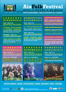 Dal 23 giugno all’1 luglio a Novi di Modena è in programma l’undicesima edizione dell’“Aia Folk Festival”, un progetto che punta a valorizzare il territorio e chi lo ha abitato e lo abita, attraverso musica ed eventi collaterali che, in questa nuova edizione, sono incrementati, coprendo l’intero territorio comunale e non solo. Protagonisti dell’AiaFolkFestival, la musica folk, talenti locali e non, gli spazi urbani, l’ambiente rurale e agricolo, le persone e le principali associazioni di volontariato del comune.