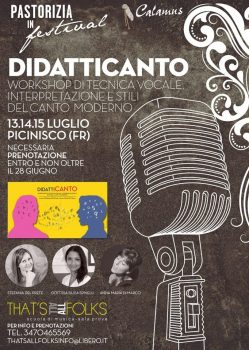 Il 13-14 e 15 Luglio a Picinisco (Fr) DidattiCanto. workshop di tecnica vocale, interpretazione e stili del canto moderno a cura di Stefania Del Prete e Anna Maria Di Marco.