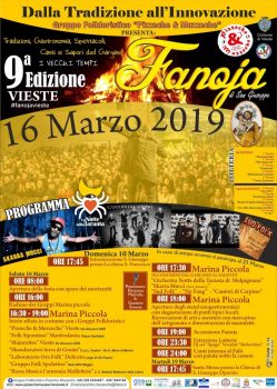 Il gruppo folcloristico “Pizzeche e Muzzeche” – in collaborazione con il Comune di Vieste e con il patrocinio della Regione Puglia – organizza il 16 marzo prossimo la “Fanoja di S.Giuseppe”, giunta alla sua nona edizione.