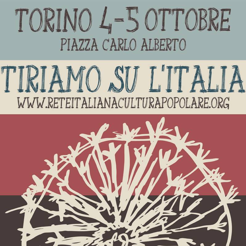 Per prendere parte alla grande festa della cultura popolare, vi invitiamo  tutti in piazza a Torino il 4 e 5 Ottobre, chi non parteciperà potrà comunque raccontare la sua storia tramite  Facebook o su Twitter utilizzando #TiriamoSulItalia