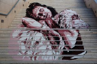 David Diavù Vecchiato, " Anna Magnani. La Diva e la Donna" . Nuovo Mercato Andrea Doria, dipinto su scalinata. Giugno 2016. Progetto Popstairs