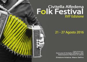 Civitella Alfedena Folk Fest (AQ) Giunto alla sua sedicesima edizione il Civitella Alfedena Folk Festival anche quest’anno mantiene inalterato il numero dei giorni di attività e offre un programma di alta qualità. L’offerta musicale del Civitella Festival per l’edizione 2016 segue la linea che lo ha da sempre caratterizzato. Serate musicalmente molto diverse tra loro offriranno allo spettatore la possibilità di spaziare tra la tradizione e l’innovazione, con le sue molteplici influenze di stili e generi, ascoltare gruppi provenienti da…