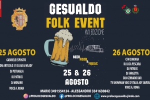Gesualdo Folk Event (AV) Dal 25 al 26 agosto nel borgo di Gesualdo la Kermesse GESUALDO FOLK EVENT – XVII° Edizione. GESUALDO FOLK EVENT è una rassegna della musica popolare del Centro – Sud Italia. L’evento si svolge ai piedi del Castello Medievale di Gesualdo, un luogo suggestivo ed affascinante, da secoli simbolo e testimone della Storia, della Cultura e della Musica dell’Irpinia. Sul finire del 500, il Castello fu regno e rifugio del Principe Carlo Gesualdo da Venosa, eccentrico…