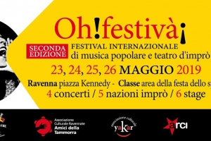 Oh!Festivà! Festival di Musica Popolare e Teatro Imprò @ Ravenna 23-24-25-26-MAGGIO 2019 Ravenna piazza Kennedy (23 maggio) Classe, campo sportivo, via Classense 120 Ravenna (24-25-26 maggio) Il progetto nasce dall’incontro tra due associazioni del territorio ravennate, Légion Étrangère d’Impro (LEdI-Yakar) e l’associazione culturale Amici della Tammorra , attive nella promozione culturale e sociale in tutto il territorio.Tutte e due sono affiliate Arci e ci collaborano attivamente in diversi progetti da 3 anni. Queste due associazioni condividono i temi di quello…