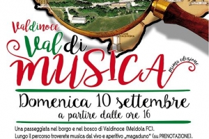 Valdimusica @ Valdinoce (FC) Prima edizione per un’iniziativa dedicata agli amanti della musica folk e dei pomeriggi all’aria aperta. Teatro della manifestazione sarà la frazione di Meldola denominata Valdinoce, immersa nel verde. Da qui prende il nome l’evento, intitolato “Valdimusica”. Di seguito il programma: Alle ore 16.00 Valdimusica apre le porte. Dal punto d‘accoglienza presso la chiesa di Valdinoce parte l‘itinerario fra bosco e borgo, con musica dal vivo e punti ristoro. Per chi attraverserà il bosco (circa 600 m…