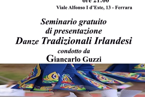 Seminario sulle danze irlandesi @ Ferrara Si tratta di un appuntamento importante per la diffusione della cultura della musica e della danza irlandese. In questa occasione per creare il clima tipico di aggregazione festoso del mondo folk, parteciperà l’ormai consolidato gruppo di Ferrara Danzeinsieme, fondato e guidato da Giancarlo Guzzi. Inizio di un percorso proposto dall’Associazione Culturale MusiJam, con l’intenzione di coordinare l’attività della danza con una formazione di musica suonata dal vivo con l’obiettivo di inserire la città nei…