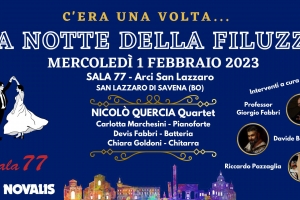 La Notte della Filuzzi @ San Lazzaro di Savena (BO) Serata dedicata alla musica Filuzziana bolognese, e alle sue tradizioni. Interventi a cura di ospiti d’eccezione: -Il professor Giorgio Fabbri -Il burattinaio Riccardo Pazzaglia -Davide Ballestri con la sua fisarmonica. Il gruppo base “Nicolò Quercia Quartet” eseguirà le più belle melodie filuzziane da ballare ed ascoltare. Nicolò Quercia: Fisarmonica e sassofoni Carlotta Marchesini: Pianoforte e voce Chiara Goldoni: Chitarra classica Devis Fabbri: Batteria Una serata ricca di sfaccettature, emozioni…