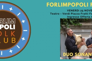 Duo Sonantiqua @ Forlimpopoli (FC) Un nuovo appuntamento con il Forlimpopoli Folk Club, questa volta al Teatro Verdi, venerdì 25 Novembre alle 21:00, ma sempre con ingresso al offerta libera. Sul palco due musicisti considerati autorità assolute, per conoscenza e per capacità esecutive, riconosciuti in tutto il mondo come alfieri e portavoce della musica del Sud Italia: Pietro Cernuto e Alessandro Mazziotti FORLIMPOPOLI FOLK CLUB VENERDì 25 Novembre Ore 21:00 Teatro Verdi – Piazza Pratti – Forlimpopoli DUO SONANTIQUA Suoni…