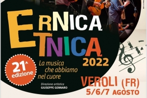 Ernica Etnica @ Veroli (FR) I fasti non sono ancora terminati ma noi siamo già pronti per il prossimo grande evento: “Ernica Etnica” la musica che abbiamo nel cuore. Il 5-6-7 agosto, dopo due anni di stop dovuti alla pandemia, torna finalmente la rassegna nazionale della migliore tradizione della musica popolare italiana, giunta quest’anno alla XXI edizione. Ernica Etnica, la cui direzione artistica è affidata a Giuseppe Gennaro, si è imposta negli anni come uno dei più importanti eventi di musica etnica e popolare…