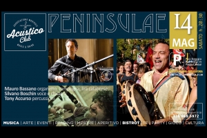 Peninsulae @ Roma Il gruppo di musica popolare si chiama “PENINSULAE”. Mauro Bassano ( organetto,zampogna,lira calabrese) Silvano Boschin( voce e chitarra) Tony Accurso(percussioni) Ovviamente il nostro repertorio trattera’ del panorama musicale del Centro-Sud Italia con tammurriate, saltarelli, pizziche, tarantelle, canti d’amore e di lavoro.