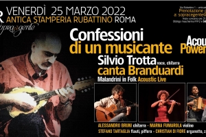Confessioni di un musicante @ Roma Confessioni di un musicante è la rivisitazione metabolizzata della musica di Angelo Branduardi da parte di un musicista interessato da sempre ai repertori del grande cantautore italiano, nei quali, rintraccia e riconosce le sue stesse grandi passioni: la musica popolare italiana, le sonorità nord europee e la musica antica dal sapore medievale. In questo concerto Silvio Trotta fonde la sua decennale esperienza al piacere di suonare e cantare un repertorio che lo…