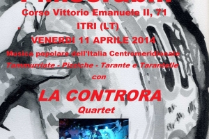 Presso il pub ristorante “I Miserabili” di Itri (LT) venerdi 11 aprile sarà di scena il gruppo di musica popolare La Controra con Silvano Boschin, Loredana Terrezza e Pierluigi Moschitti. con un concerto “a bballo” di Pizziche, Tammurriate e Tarantelle. Inizio ore 21,30. Da non perdere: prenotate!