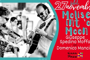 Molise Int ‘o Moon @ Roma 19.30 aperitivo con le fantasie della nostra chef 21.30 inizio concerto Giuseppe “Spedino” Moffa con Domenico Mancini al violino presentano “Molise int ‘o Moon” Una voce, una chitarra, una zampogna e un violino al chiaro di luna, in un viaggio che parte dal Molise per sconfinare in altri luoghi del mondo. °°°°°°°°°°°°°°°°°°°°°°°°° INFO E PRENOTAZIONI: #casadellapace 3335446723 SOLO whatsapp o sms °°°°°°°°°°°°°°°°°°°°°°°°° Le attività sono rivolte esclusivamente ai soci con tessera CAPIT (5€) L’ingresso…