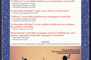 La Novena de Natale @ Roma Ci sono ancora ristoranti che decidono di mantenere viva una tradizione che sta sparendo. Il piacere di ascoltare buona musica davanti a un piatto di verace cucina romana in un ambiente elegante per la sua semplicità é una rara possibilità da non perdere. Con Lavinia Mancusi Daniele Ercoli Armando Pignata Giggi Liberti Mauro Menegazzi 7 dicembre ore 18:00 8, 24, 26, 30, 31 dicembre ore 12:30 1e 5 gennaio ore 19:30 6 gennaio ore…