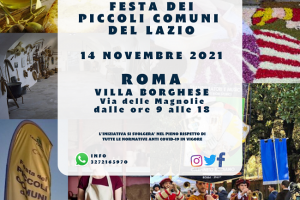 Festa dei Piccoli Comuni del Lazio @ Roma Roma Villa Borghese (Via delle Magnolie) dalle ore 9 alle 18 A Roma torna la festa dei Piccoli Comuni del Lazio, organizzata dalla Regione Lazio in collaborazione con Legambiente. Colori, sapori, suoni, bellezze e tradizioni da ogni territorio, animeranno il cuore della Capitale.PROGRAMMA DELL’EVENTO FESTA DEI PICCOLI COMUNI – 14 NOVEMBRE 2021 ROMA, VILLA BORGHESE (VIA DELLE MAGNOLIE) Apertura degli stand alle ore 9 fino alle 18 SPETTACOLI FOLKLORISTICI E MUSICALI Dalle…