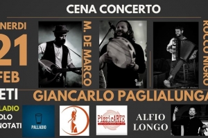 Pizzicati Night @ Rieti Una notte dedicata alla musica popolare. Le note sanguigne e passionali di una splendida orchestra formata da Giancarlo Paglialunga, Rocco Nigro, Alfio Longo e Massimiliano Di Marco voleranno al Palladio Live Club, per farci rivivere il fuoco della sconfinata notte salentina. Vi Aspettiamo!! 0