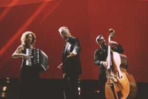 Un treno metropolitano che tocca le stazioni più colorate della musica etnica, dall’indie folk ai Balcani, da Roma al Flamenco passando per il klezmer, sulle ali del ritmo e della giocosità. Il duo – formato da Ludovica Valori alla fisarmonica, trombone e voce e Paolo Camerini al contrabbasso e ai loop – ha viaggiato per le strade dell’Italia, degli USA, della Germania, della Polonia, del Belgio, del Lussemburgo, della Francia e dell’India, raccogliendo dovunque gioia e partecipazione e organizzando laboratori…