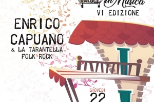 Enrico Capuano & la Tarantella Folk @ Nettuno (RM) L’Associazione culturale Shara Eventi d’Arte presenta la sesta edizione del festival Balcone in Musica con un concerto per il sociale di Enrico Capuano & la Tarantella Folk Rock. Un evento realizzato in collaborazione con la Onlus Uniti con il Cuore, con il patrocinio del comune di Nettuno, il sostegno della fondazione Onlus “Umberto Porfiri” e la direzione artistica della flautista e concertista internazionale Maria Augusta Pannunzi: l’obiettivo è quello di raccogliere…