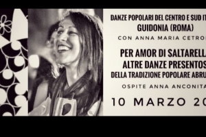 Danze Popolari con Anna Anconitano @ Guidonia (RM) Corso di Danze Popolari del Centro e Sud Italia con ANNA MARIA CETRONE insegnante dell’asd TARANTARTE DOMENICA 10 MARZO ospita ANNA ANCONITANO h 10.00– 12.00 Il laboratorio é un’occasione di approfondimento per chi già conosce queste danze ed una nuova esperienza per tutti coloro che vogliono avvicinarsi al mondo delle danze popolari per la prima volta. Non é necessario avere precedenti studi di danza, ma solo la voglia e la curiosità di…