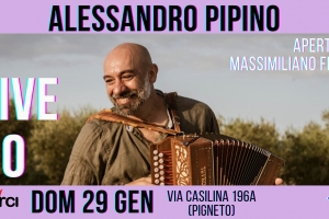 Alessandro Pipino Live Balfolk @ Roma Alessandro Pipino Compositore, arrangiatore e polistrumentista del genere Balfolk. Membro dei Radiodervish e de L’Escargot, presenta “Accordéon”, un progetto per organetto solo. La ricerca dell’emozione prima che della pulsazione. L’organetto oltre la tradizione, brani di compositori contemporanei si alternano a composizioni proprie. In apertura: Massimiliano Felice Leader e co-fondatore di gruppi come Nuova Orchestra SARM, Neós Trio, Blue Reed e Zenìa-Folk immaginario, compositore e musicista di scena per diverse compagnie teatrali, Massimiliano Felice torna…