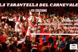 La Tarantella del Carnevale @ Roma Torna, domenica 19 febbraio, la Tarantella del Carnevale, maschere, danze, canti, musiche e strumenti della tradizione del Carnevale. Un progetto originale di Ambrogio Sparagna con l’Orchestra Popolare Italiana dell’Auditorium Parco della Musica il Coro Popolare diretto da Anna Rita Colaianni il Gruppo Danzatori Popolari diretti da Francesca Trenta e con la partecipazione delle maschere zoomorfe molisane. Una produzione originale di Fondazione Musica per Roma. Una grande festa per tutti, piccoli e grandi, con la partecipazione di maschere…