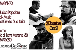 Amaranto Live @ Roma Antonella Spirito – Voce Davide Roberto – Percussioni e Voce Marco Madana Rufo – Organetto Giacomo Giuliani – Chitarra e Voce @ Locanda Del Gusto Domenica 2 Dicembre – H 21 Roma – Via Di Torre Morena, 150 Prenotazioni 06 7981 1240