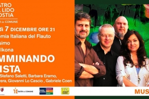 Stefano Saletti & Banda Ikona @ Ostia (RM) FLAUTISSIMO 2018 – 20a edizione “Camminando a vista” Direzione artistica STEFANO CIOFFI TEATRO DEL LIDO – ROMA 7 dicembre 2018 ore 21 BANDA IKONA in “CAMMINANDO A VISTA” Stefano Saletti: bouzouki, oud, chitarra e voce Barbara Eramo: voce Gabriele Coen: sax, clarinetto e flauto Mario Rivera: basso acustico Giovanni Locascio: drum set e percussioni Un concerto che diventa un cammino tra le strade del Mediterraneo. Questo è quello che presentano Stefano Saletti e…