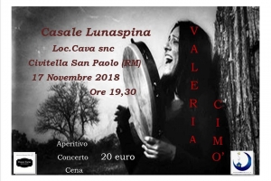 Si ti cuntu un cuntu. Valeria Cimò @ Civitella San Paolo (RM) L’Associazione Lunaspina Onlus e l’Home Farm Restaurant di Lunaspina hanno l’onore di ospitare per una sera la voce, le percussioni e la stupenda presenza di VALERIA CIMO’ che ci farà vivere per una sera l’atmosfera calda della musica siciliana e farà battere il cuore al ritmo del suo tamburo. La nostra location, i nostri piatti e la presenza di Valeria ci regaleranno una serata speciale e magica a…