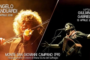 Giuliano Gabriele e Branduardi @ Monte San Giovanni Campano (FR) Due serate davvero imperdibili a Monte San Giovanni Campano, il 13 e il 14 Aprile 2018. In Occasione della festa Maria SS. ma del Suffragio di Monte S. G. Campano (FR), con ingresso libero, avremo venerdì 13 Aprile, dalle ore 21 il concerto di Giuliano Gabriele Ensemble + Canusía, in Piazza G. Marconi. Sabato 14 Aprile invece, dalle ore 21:30 Angelo Branduardi in Concerto in Piazza G. Marconi.