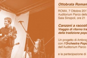 Ottobrata Romana @ Roma Ottobrata Romana – X Edizione ROMA, 7 Ottobre 2017 Auditorium Parco della Musica di Roma Sala Sinopoli, ore 21 Canzoni a raccolta Viaggio di ritorno tra i canti della tradizione popolare romana Un progetto di Ambrogio Sparagna con l’Orchestra Popolare Italiana dell’Auditorium Parco della Musica e la partecipazione di Luca Barbarossa e con il Coro Popolare diretto da Anna Rita Colaianni Ospiti speciali Le Donne di Giulianello Giorgio Onorato Una Produzione originale della Fondazione Musica per…