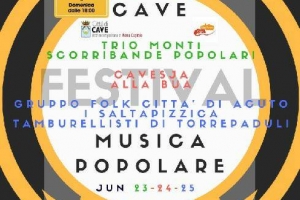 Cavesja Festival @ Cave (RM) Ci risiamo. Nell’ultimo fine settimana di Giugno 23-24-25, il Gruppo Musicale Cavesja, dopo il successo dello scorso anno, presenta “Festival di Musica Popolare” 2° edizione. Un appuntamento imperdibile per gli amanti del genere. Ingresso #GRATUITO Sarà presente un ricco stand enogastronomico e mercatino dell’artigianato. Presso Anfiteatro Comunale Via degli Astronauti, CAVE (Rm) PROGRAMMA: 23/06/2017 – ore 20,30 -Trio Monti “Musica Romana come nun te l’aspetti…” – ore 22,00 – Scorribande Popolari in concerto 24/06/2017 –…