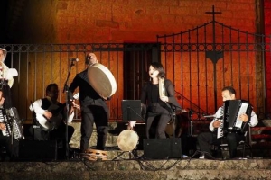 Sancto Ianne @ Ostia (RM) Lo spettacolo che i Sancto Ianne presenteranno dal vivo sabato 28 gennaio al Teatro del Lido di Ostia si chiama “Trase”, come il titolo del loro ultimo ultimo album, e comprende i brani più rappresentativi dei quattro dischi della band e alcuni classici della tradizione popolare campana tra cui le tammurriate (” ‘E l’auciello”, “All’ Avvocata”, “Alli uno….alli uno”, “Tammurriata nera”, “Il canto dei Sanfedisti”) e le ipnotiche tarantelle (” ‘O munachino”, “Cicerenella”, “Tarantella d’a…