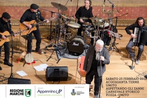 La Macina @ Umito (AP) Terzo appuntamento con il Festival dell’Appennino che per l’edizione invernale propone un gemellaggio con il Carnevale Storico di Pozza e Umito, frazioni del Comune di Acquasanta Terme (Ascoli Piceno). “Aspettando gli Zanni” , questo il titolo dell’evento , si svolgerà sabato 23 febbraio ad Umito con un interessante incontro con l’Associazione Carnevale ed un concerto di musica popolare affidato al famoso gruppo de “La Macina”. Il Carnevale di Pozza e Umito è per longevità secondo…