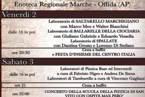 SIBYLLA FOLK FESTIVAL c/o Vinea, Enoteca regionale di Offida (A.P) ***SABATO 3 NOVEMBRE*** ore 15:30 Vinea. Registrazione partecipanti ore 16:00/18:00 – Vinea – Laboratorio di pizzica base a cura di Andrea De Siena e Fabrizio Nigro della Scuola di Pizzica di San Vito 18:15/20:20:15 – Vinea – Laboratorio di pizzica intermedio/avanzato a cura di Andrea de Siena e Fabrizio Nigro della scuola Di Pizzica Di San Vito 16:00/18:00 – Sala Pertini – Laboratorio di tamburello a cura di Vincenzo Gagliani…