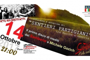 Sambene @ Moie (AN) “Sentieri partigiani, fra Marche e memoria” è il titolo del concerto dei Sambene, sabato 14 ottobre ore 21 alla Biblioteca La Fornace di Moie, e del disco di inediti che la compagine musicale ambisce a realizzare. Sabato pomeriggio, 14 settembre, la biblioteca ospiterà il concerto del gruppo folk diretto da Lucia Brandoni, che presenterà la campagna di crowdfunding, avviata per la realizzazione del disco stesso. «Si tratta di una campagna di sensibilizzazione dal basso – fanno…