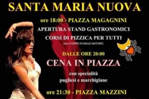 Pizzica e Spizzica @ Santa Maria Nuova (AN) Pizziche e tarantelle. Torna a Santa Maria Nuova l’incontro con la musica popolare da venerdì 28 a domenica 30 luglio con l’appuntamento “I Colori della musica”. L’evento è organizzato dalla Banda Comunale La Lombarda di S. Maria Nuova con il patrocinio del Comune di Santa Maria Nuova. Tutti gli eventi sono ad ingresso libero. Clou dell’evento il sabato 29 luglio con “Pizzica&Spizzica”: Ore 18.30.-20.00 in Piazza Mazzini: Laboratorio di Pizzica Coreografica Insegnante…