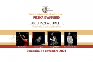 Pizzica d’Autunno @ San Marcello (AN) Vi aspettiamo al Morobello di San Marcello domenica 21 novembre: ore 16:00 “Sentire” – Stage di pizzica con Veronica Calati Il rapporto tra il corpo e la musica popolare è affidato a questa espressione: mentre danziamo si stabilisce una connessione del tutto peculiare tra alcuni strumenti e le possibilità che ha il corpo di muoversi in relazione allo spazio e in relazione agli altri. Obiettivo dello stage è approfondire questo rapporto nella pizzica pizzica,…