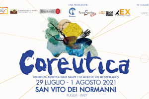 Coreutica @ San Vito dei Normanni (BR) Dal 29 luglio al 1 agosto 2021 a San Vito dei Normanni (BR) la settima edizione di Coreutica residenza artistica sulle danze e le musiche nel Mediterraneo COREUTICA 2021 RESIDENZA ARTISTICA SULLE DANZE E LE MUSICHE NEL MEDITERRANEO VII EDIZIONE Una produzione: World Music Academy, Scuola di Pizzica di San Vito, TEX – Il teatro dell’ExFadda Coreutica – Residenza artistica sulle musiche e le danze nel Mediterraneo, giunta quest’anno alla settima edizione, è…