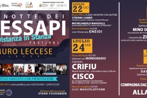 La Notte dei Messapi – Distanza in stanza Festival @ Muro Leccese (LE) Cultura, musica, food, bellezza e arte: da giovedì 22 a domenica 25 luglio, nel cuore del Salento, a metà strada tra Lecce e Leuca e tra i mari Adriatico e Ionio, l’antico centro messapico di Muro Leccese accoglie la prima edizione de La Notte dei Messapi – Distanza in stanza Festival, ideata e realizzata da Dilinò, in collaborazione con l’amministrazione comunale, nella “Programmazione Custodiamo la cultura in Puglia – Fondo Speciale per…