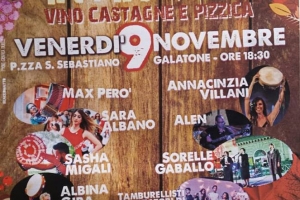 Vino, castagne e pizzica @ Galatone (LE) Tramandiamo cultura. Vale la pena il 9 Novembre venire in Piazza San Sebastiano a Galatone (LE) a stare con noi per gustare sapori salentini, pettule, vino e come vuole la tradizione di S.Martino, anche le castagne, e per ballare la pizzica pizzica, patrimonio della cultura contadina salentina. Inizieremo dalle ore 18.30 ad animare la Piazza con un Concerto di un mix di grandi Artisti: Anna Cinzia Villani, Max Però Massimiliano Però, Alienvs AlainMy…
