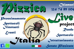 “Pizzica Live Project” riunisce tutti i gruppi e gli artisti in ogni parte d’Italia, per serate, ronde ed altro ancora. Puoi confermaci la tua adesione a: livepizzica@gmail.com e aggiungi il nostro logo dove vuoi, come partner, noi faremo ugualmente, se ci invii il link sarà pubblicato! Inoltre avrete una pagina personalizzata, su sito con la tua pagina facebook, che si aggiornerà in automatico, e tanto altro ancora.