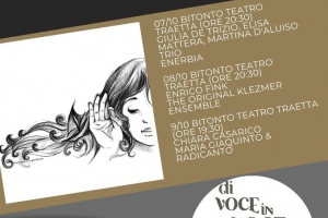 Di Voce In Voce @ Bitonto (BA) Dal 7 ottobre torna a Bitonto il Festival Di Voce In Voce, l’evento realizzato dall’Associazione Culturale Radicanto con il contributo del Comune di Bitonto e della Regione Puglia, dedicato alle produzioni musicali originali nel genere d’autore e popolare. Per la sua XIV edizione la manifestazione sceglie una location di prim’ordine come il Teatro Traetta di Bitonto, proponendo concerti dal vivo di caratura nazionale e internazionale con ingresso libero e gratuito, senza prenotazione, fino ad esaurimento posti. Anche per il 2022 il Festival Di Voce In…