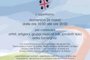 Sardegna tra noi @ Olbia Domenica 26 Marzo 2017 dalle ore 10:00 alle ore 20:00, al Centro Commerciale Gallura di Olbia ci sarà la possibilità di conoscere artigiani, artisti, gruppi musicali folk, prodotti tipici della Sardegna. Nel pomeriggio saranno presenti i gruppi folk “Santa Maria e Turres” di Galtellì, “Beata Vergine del Rimedio” di Ozieri, Gruppo Folk di Luras, Coro “Lachesos” di Mores e il Gruppo Storico Medievale con i “Tamburini” di Ardara. Un laboratorio per bambini, organizzato dalla Pro…