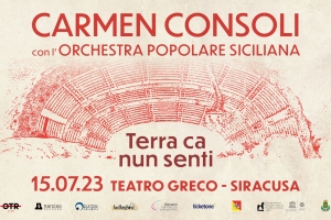 Carmen Consoli e Orchestra Popolare Siciliana @ Siracusa Prosegue la programmazione di Siracusa stelle al Teatro, rassegna dal titolo evocativo promossa dal Comune, in collaborazione con la Regione Siciliana, con gli assessorati regionali al Turismo, sport e spettacolo e alla Cultura e con il Parco Archeologico di Siracusa. La rassegna è inserita nel progetto “Anfiteatri Sicilia” ed è organizzata da Puntoeacapo e Shake it in collaborazione con l’associazione Development e GG Entertainment. Questo week end protagoniste due grandi nomi…