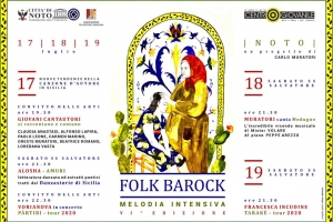 Folk Barock @ Noto (SR) Dal 17 al 19 luglio torna a Noto Folk Barock, l’appuntamento con la musica etnica e folk diretto artisticamente da Carlo Muratori e organizzato con il patrocinio del comune di Noto. La sesta edizione quest’anno è intitola “Melodia Intensiva”. “In epoca di funeste epidemie- spiega il direttore artistico Carlo Muratori-alla ricerca di miracolosi rimedi, spesso forieri di pericolose controindicazioni, ci è sembrato opportuno ricorrere a qualcosa di dolce, sperimentato e universalmente riconosciuto: La musica, la…