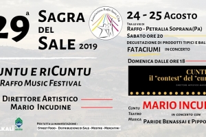 Cuntu e RiCuntu Raffo Music Festival @ Petralia Soprana (PA) Tutto pronto per la Sagra del Sale e l’evento CUNTEST, il “contest” del “cunto” di Mario Incudine che annuncia il gemellaggio della manifestazione di Raffo con quella di Antillo, piccolo comune della Valle d’Agrò in provincia di Messina , dove si tiene il contest “Antillo folk festival” rivolto a giovani musicisti. Due manifestazioni legate dalla cultura popolare siciliana, sopravvissuta proprio grazie al “cunto” e al canto, che hanno come denominatore comune la genialità di Mario…